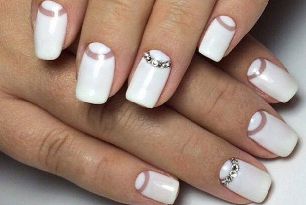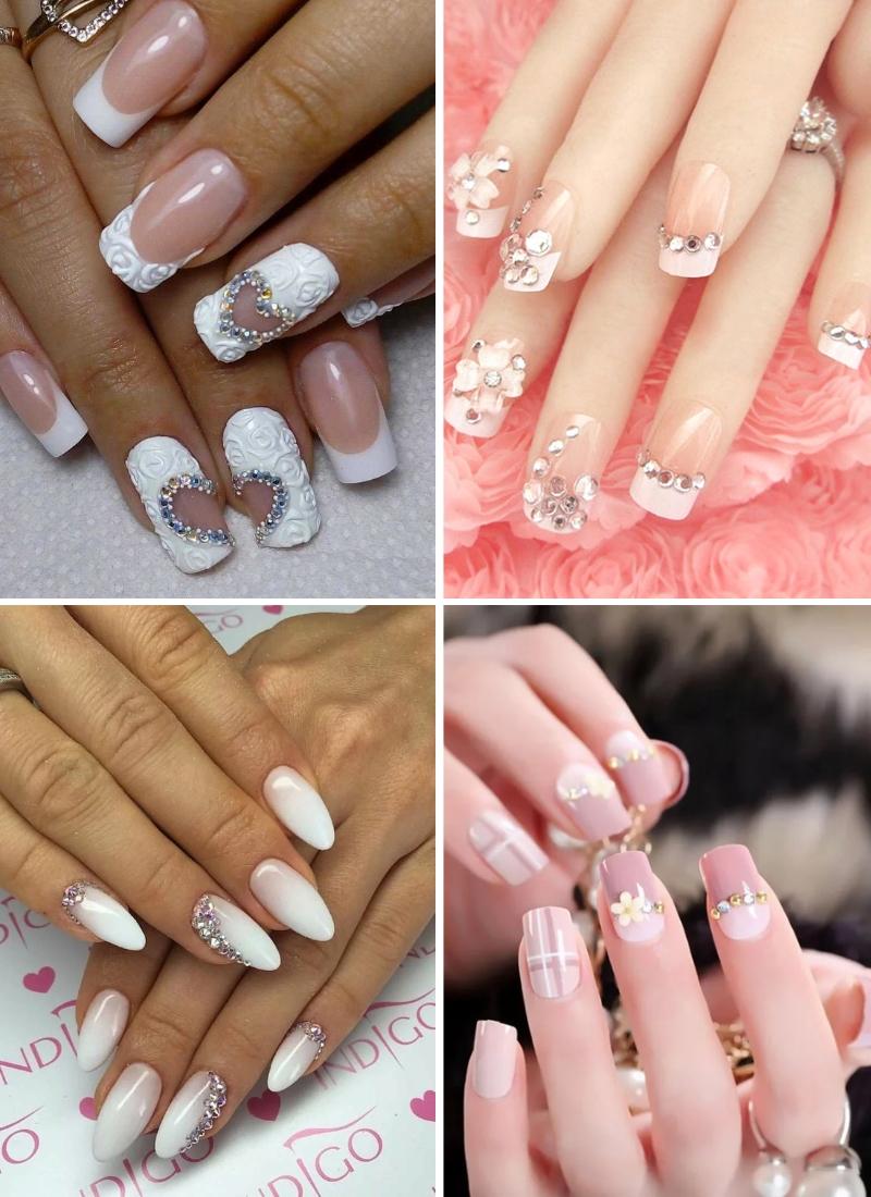 Свадебный французский маникюр или другие варианты покрытия вполне можно украсить стразами