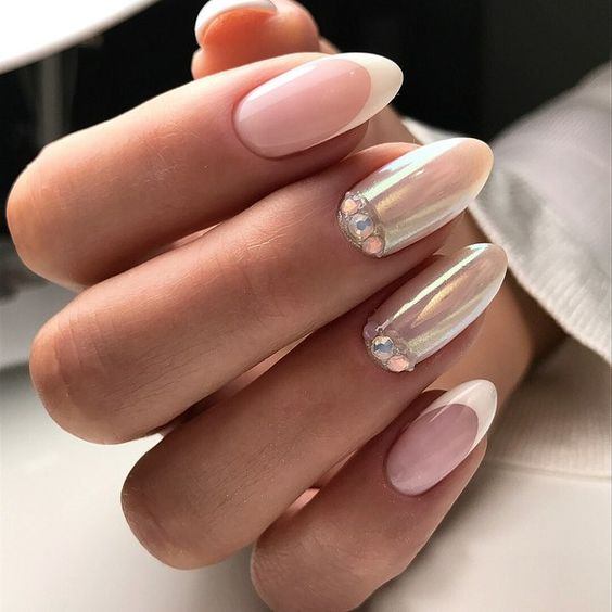Маникюр невесты с жемчужной втиркой