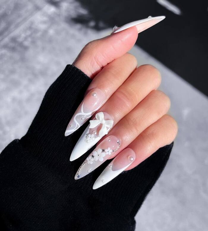 Свадебный маникюр с бантиками