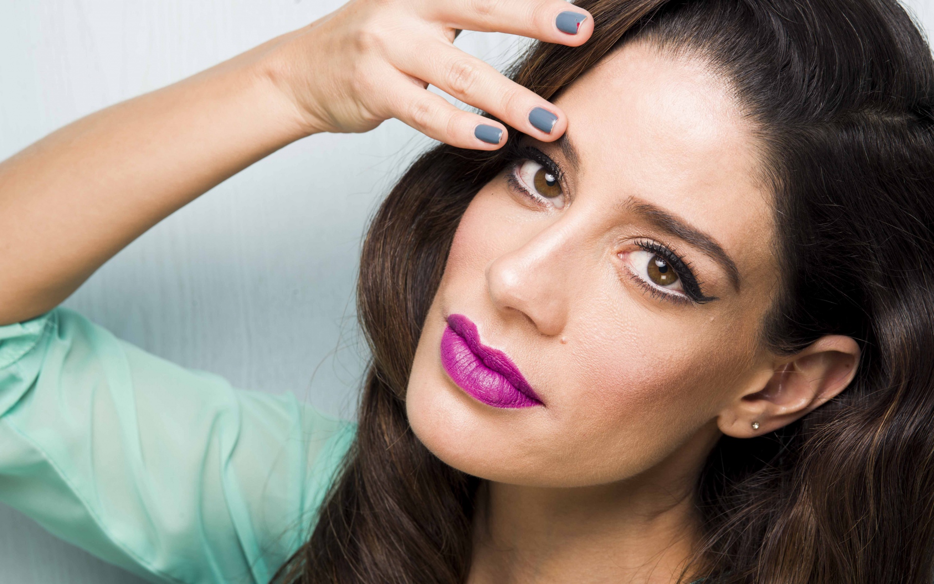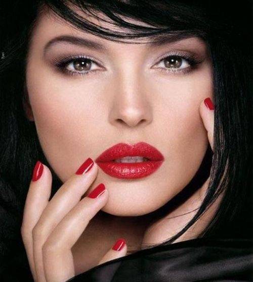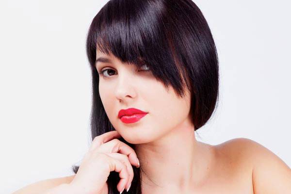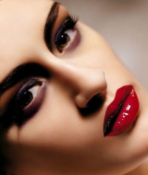 Темные глаза. Карие очи в сочетании с угольной шевелюрой это уже красиво. Дополните образ красными чувственными губами, малиновым оттенком