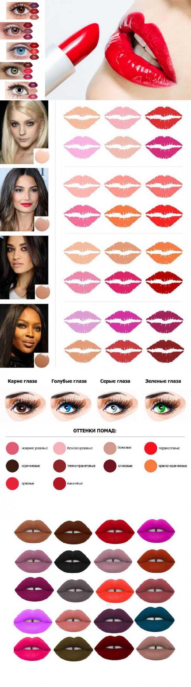 Цвет глаз нельзя назвать основным критерием при выборе помады – большее значение имеет оттенок кожи.