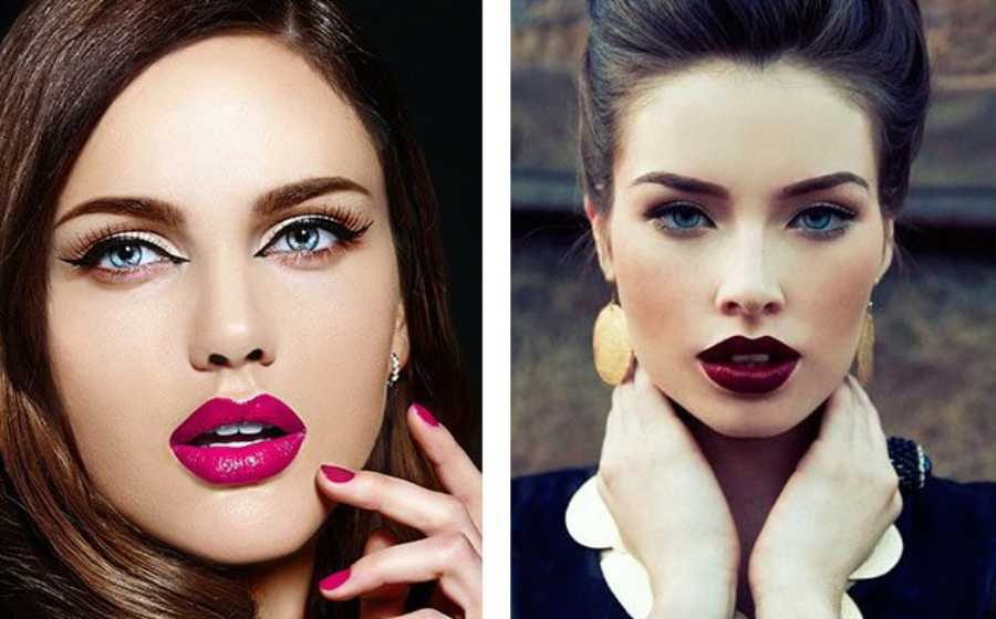 Если у вас голубые глаза и светлая кожа, то некоторые яркие оттенки будут смотреться неуместно (это правило неактуально, если кожа все же загорелая). В дневном макияже хорошо будет смотреться бежевый или нежно-розовый цвет. На вечер можно поэкспериментировать с малиновым, красным, винным оттенком.