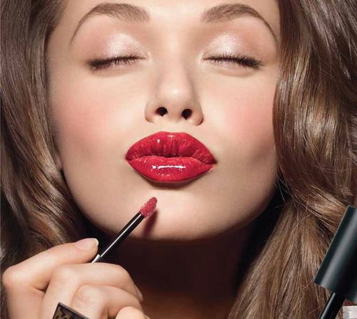 - Ярко-красный или темный цвет зрительно сужает губы. Можно воспользоваться прозрачным блеском, чтобы они казались более объемными, особенно если они тонкие от природы.