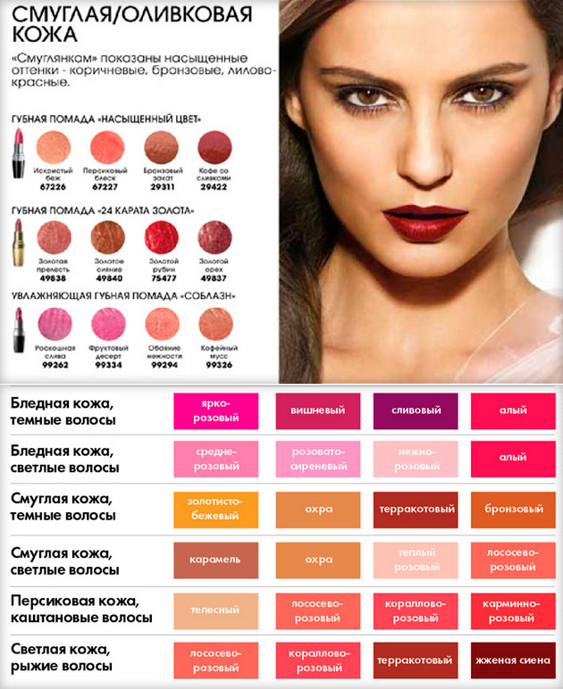 - кожа светло-оливкового тона прекрасно комбинируется с теплыми, мягкими вариантами помады.