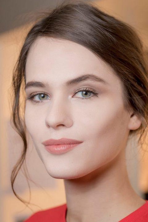 - Аля-натюрель. Мода на естественность продолжает занимать лидирующие позиции. Главная ставка при создании природного мейкапа делается на идеальную кожу. Для этого необходимо вооружиться такими бьюти-помощниками как база под макияж, Би-Би, Си-Си или тональный крем, консилер и хайлайтер. Максимальная натуральность, впрочем, может и не ограничиваться только кожей. Применение карандаша для прорисовки бровей или линий век вполне уместно. Также можно придать глазам более четкий вид, слегка подкрасив ресницы тушью или нанести тени натуральной палитры. Для естественного макияжа используется блеск для губ с приближенным оттенком к собственному цвету или совсем бесцветный.