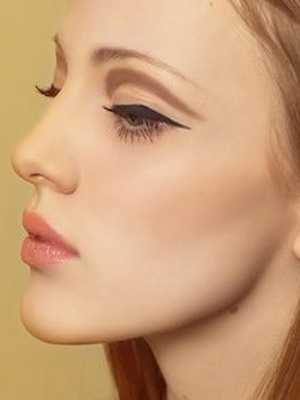 - Широко посаженные глаза легко корректируются стрелкой по всей длине верхнего века с удлинением линии подводки в направлении переносицы, стрелка на близко посаженных глазах выполняется по тому же алгоритму, только в противоположном направлении.