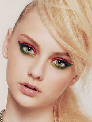 Но по законам сегодняшних трендов активный макияж глаз требует идеального подбора помады или блеска для губ. Многие дизайнеры предлагают их просто «выбеливать» с помощью тонального крема или консилера с пудрой. Таким образом, основными акцентами становятся глаза, линия овала и скул, особенно хорошо смотрится такой вариант с «гладкой» прической.