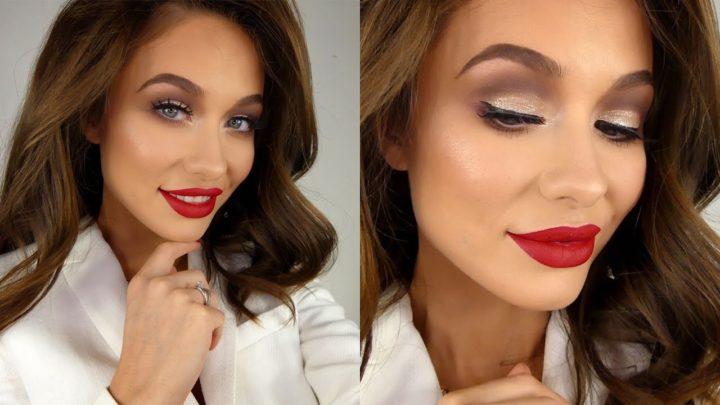 Глянцевые красные губы не выходят из модыМакияж с яркими красными губами Michael KorsЧерные стрелки и красная помада — классика бьюти трендов