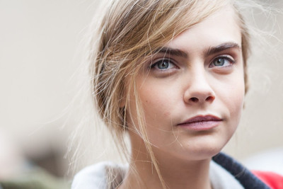 Это главная изюминка образа девушки. Брови Кары Делевинь без макияжа выглядят густыми, натуральными и естественными, подчеркивая ее индивидуальность. Именно она ввела моду на широкие брови, удаляя пинцетом лишь близкие к переносице волоски. Кара рекомендует подбирать форму бровей под черты лица, а для того, чтобы они выглядели ухоженными, выполнять макияж бровей с помощью специального геля.