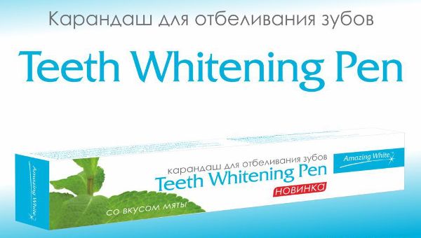 Американская компания Amazing White разработала карандаш для отбеливания зубов Teeth whitening pen. Тюбик имеет форму карандаша и содержит густой гель, который без труда наносится и не растекается.