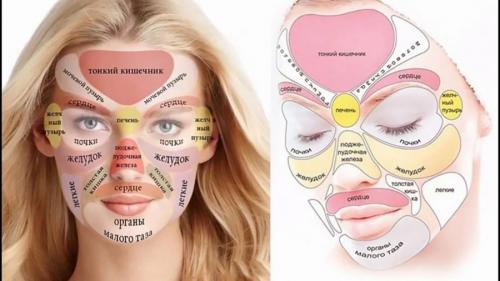 Существует медицинское мнение, что части лица соответствуют какой-либо внутренней системе, соответственно, состояние дермы различных зон на лице указывает на здоровье или заболевание отдельных внутренних органов. Такая система первичной диагностики помогает понять, когда желательно обратиться к врачу и к какому именно, чтобы потом не пришлось длительно излечивать запущенные заболевания.