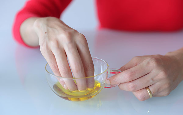 Каждый день, на очищенную кожу рук наносите масло, и делайте массаж пальцев и ногтей. Не пропускайте ни миллиметра, покрывайте руки обильно маслом. Поле массажа, оденьте полиэтиленовые или резиновые перчатки, а сверху укутайте теплым одеялом на 1 час (можно надеть варежки), или же опустите руки в емкость с горячей водой (это ускоренный способ) на 10 минут.
