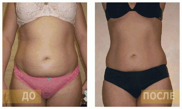 Фото до и после проведения курса процедур кавитации на животе