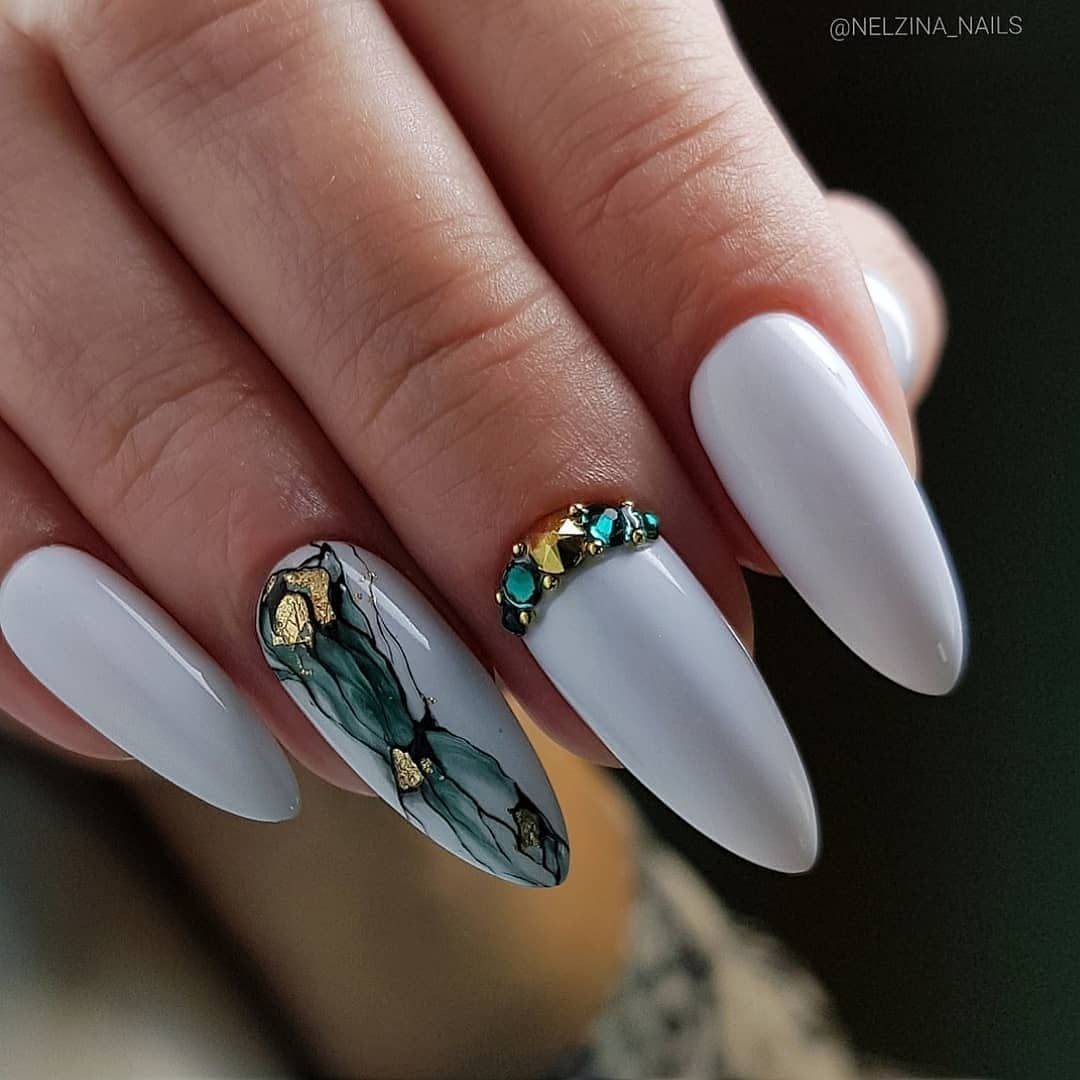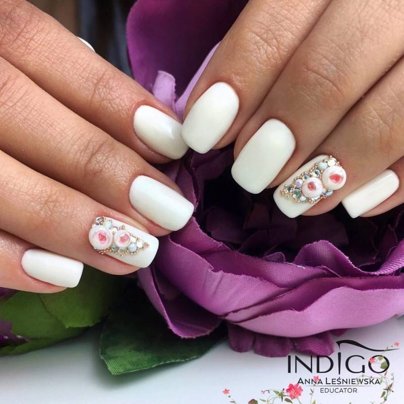 - Покройте ноготь белым лаком. Дождитесь его высыхания.