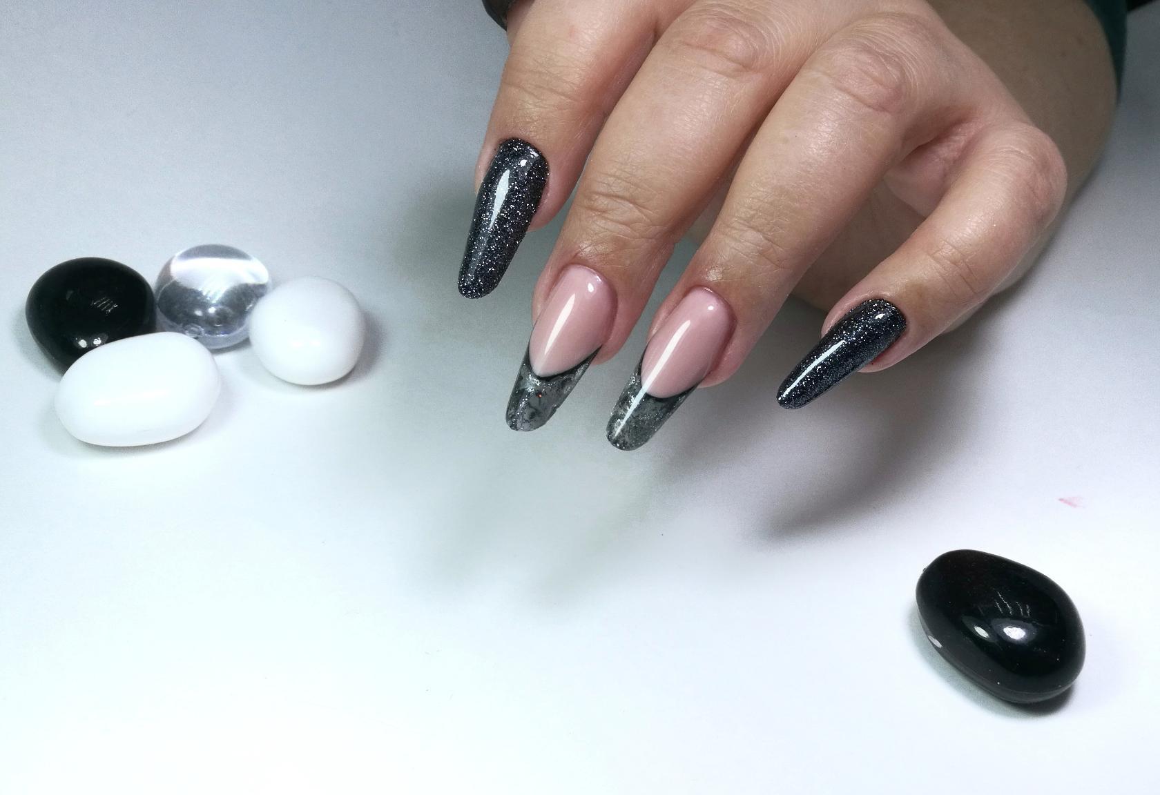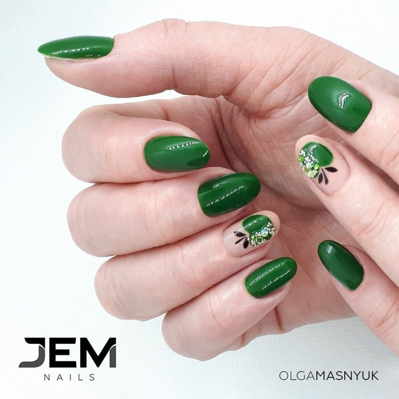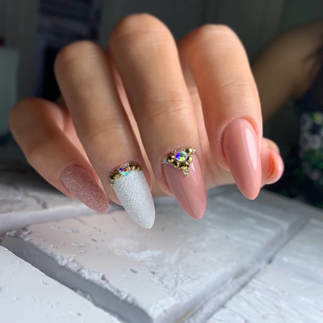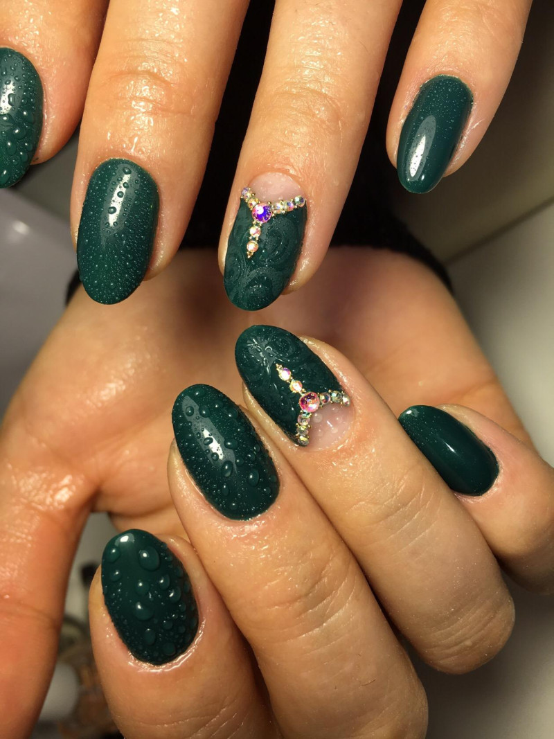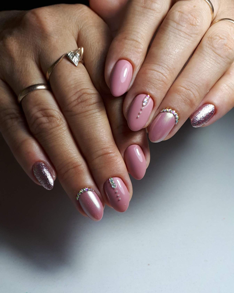 Если покрытие отлично держится, на нем нет сколов, но ноготь отрос и стало заметно незаполненное пространство у основания ногтя, перекройте его лаком в оттенке металлик – золотым или серебряным – или выложите аккуратную полоску из стразов. Получится лунный вариант маникюра.