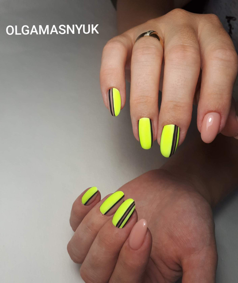 - Наклейте на ногти три полоски (как пешеходная зебра) и покройте поверхность черным лаком. Дайте высохнуть.