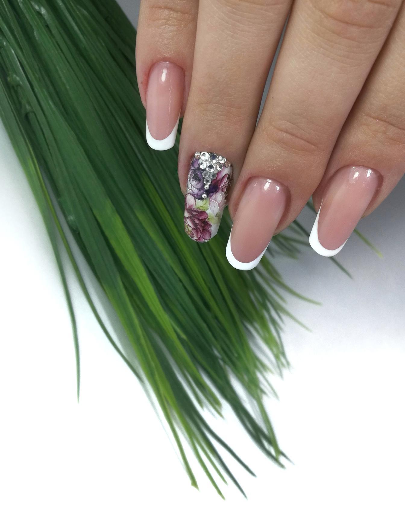 - Домашний френч. Французский маникюр – это классический способ декорирования ногтей. Выполнение такого маникюра практически не вызывает сложностей. Для начала нанесите на ноготь нежно-розовый лак, дайте ему высохнуть. После этого наклейте специальные полоски для маникюра в начале свободного края ногтя и закрасьте оставшуюся его часть белым или бежевым цветом. Дождитесь высыхания и при необходимости нанесите еще один светлый слой. Как только лак полностью высохнет – нанесите закрепитель.