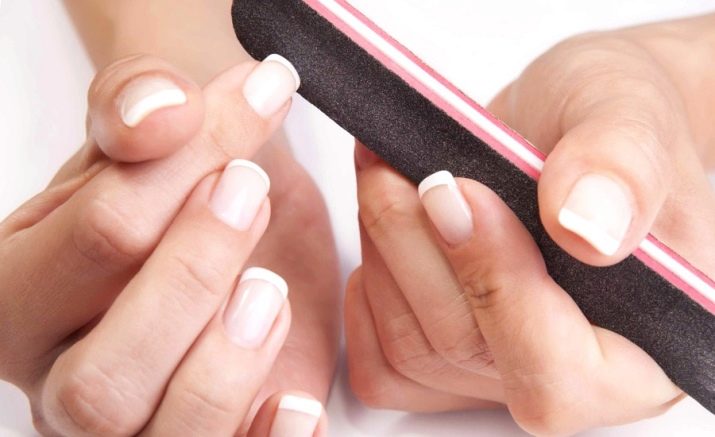 Для корректировки формы и длины ногтей нельзя пользоваться ножницами и кусачками, железными пилками. Для нарощенных ногтей подходят только специализированные инструменты с абразивностью 100/100 (на самой пилке отображается коэффициент). Только такими пилочками можно исправить какой-либо дефект, не повредить конструкцию искусственного ногтя и не причинить вред натуральному.