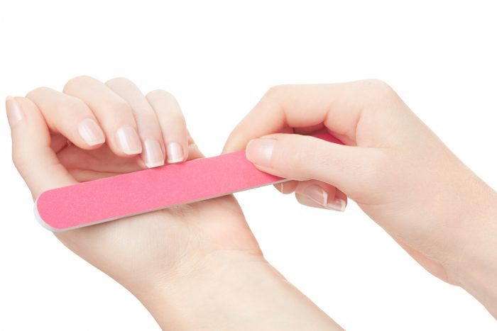 Для корректировки формы и длины ногтей нельзя пользоваться ножницами и кусачками, железными пилками. Для нарощенных ногтей подходят только специализированные инструменты с абразивностью 100/100 (на самой пилке отображается коэффициент). Только такими пилочками можно исправить какой-либо дефект, не повредить конструкцию искусственного ногтя и не причинить вред натуральному.