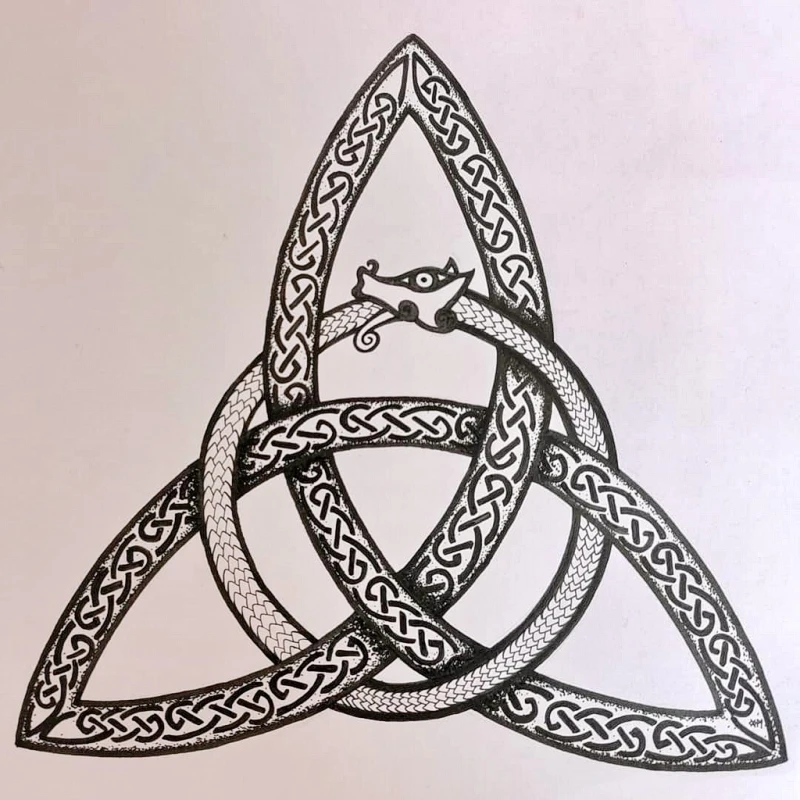- Кельтская плетенка. Символизирует духовное начало. Выступает в качестве обрамления другого рисунка.