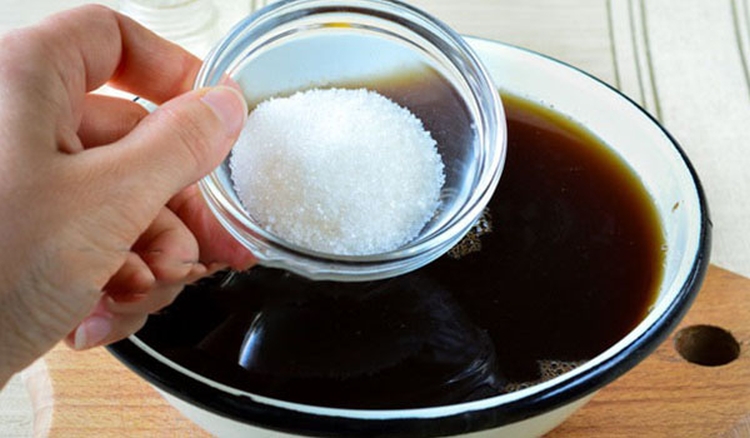 - Чтобы получить хороший результат, нужно взять 1 небольшую ложку черного чая и смешать с таким же количеством сахара.