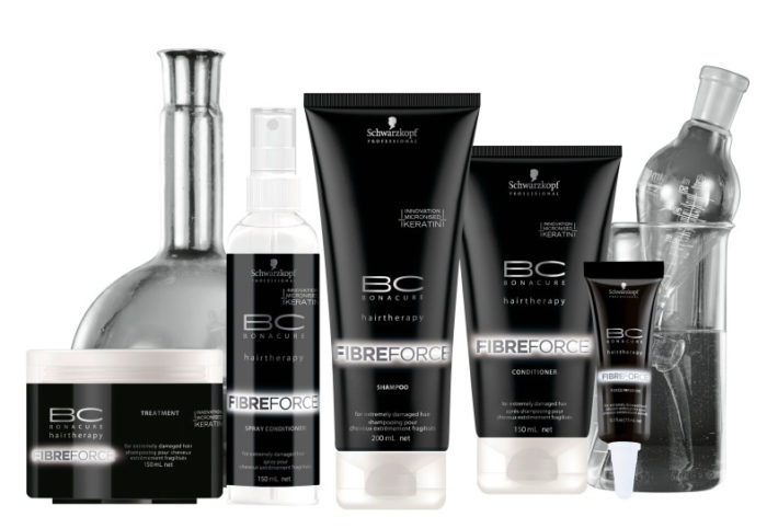 Еще одна популярная кератиновая система по уходу за волосами – Bonacure Fibre Force от Schwarzkopf – завоевала особенную любовь у девушек. И это понятно, линейка создана специально для домашнего применения, а по эффективности превосходит многие салонные процедуры. В основе средств лежит использование молекул гидролизованного кератина, которые обладают очень маленьким размером, что позволяет им легко встраиваться в поврежденные участки волос.
