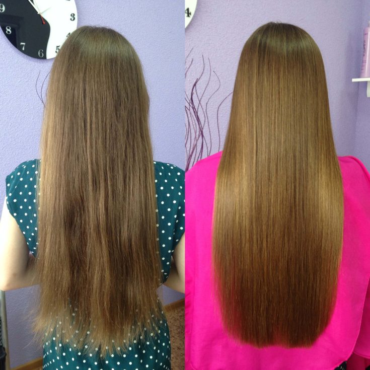Важно! Обязательно сообщите специалисту по наращиванию, что ваши волосы подверглись кератиновому выпрямлению. Это поможет ему выбрать клеевой состав, не конфликтующий с составом кератина