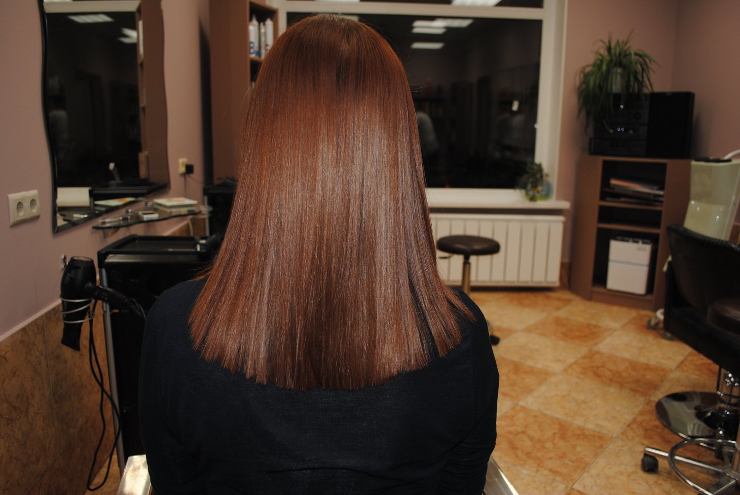 Во втором случае проводят выпрямление, разглаживание. Результат – прямые, гладкие пряди, даже если ранее они были слишком пушистые, завивались от природы.