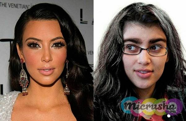 Безусловно, лицо Кардашьян без макияжа весьма милое. Но также звезде повезло родиться в богатой семье, поэтому у нее нет проблем с косметологами и возможностью пластических операций. Некоторое время назад Ким исправила свой нос. Однако, профессиональный мейк-ап делает свое дело, и конечно без макияжа Ким Кардашьян не чем не лучше 95% наших девушек.
