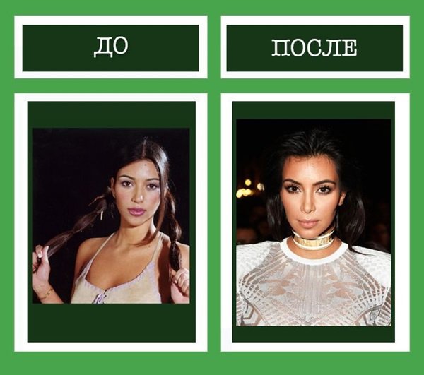 Фото Ким Кардашьян до и после пластики лица