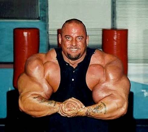 Огромные бицепсы — мечта многих, именно она приводит в залы начинающих культуристов. Бицепс Арнольда Шварценеггера в период активных тренировок — 54–57 сантиметров. Бицепс Дориана Йейтса — 54 сантиметра. И хотя многие (в том числе Стюарт Макроберт, автор методики по наращиванию массы) полагают, что эти обмеры — фейк и что их завышают сами культуристы в погоне за славой, 50-сантиметровые руки — это без преувеличения главный фетиш бодибилдинга. Американский качок Грег Валентино пошёл дальше и сделал себе руки в 69 сантиметров! Он похож на раздувшегося Халка, и «жертва культуризма» — явно о нем. Он стал качаться в начале 1980-х, и с руками у него все было в порядке — 47 сантиметров, если верить его собственным словам. Но в 1990-х Валентино открыл для себя препарат «Синтов» — это масло, которое колют в мышцу. Масло остаётся между пучками мышечных волокон, и из-за этого мышца кажется больше. Препарат-предшественник «Синтола» под названием «Эсиклен» был известен культуристам уже в начале 1980-х, но «Эсиклен» внутри тела распадался очень быстро, и уже через сутки мышца вновь принимала свой обычный вид. А в 1992 году появился «Синтол» — после инъекций мышца оставалась раздутой три-пять, а иногда и больше лет. Чем больше инъекций — тем больше объём мышцы. Курс, который позволяет вырастить 70-сантиметровые руки, включает около 200 инъекций в каждый бицепс.