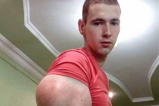 Придя из армии, фрик за короткий месяц, сделал себе настолько много инъекций, что его обхват бицепса стал 60 см.