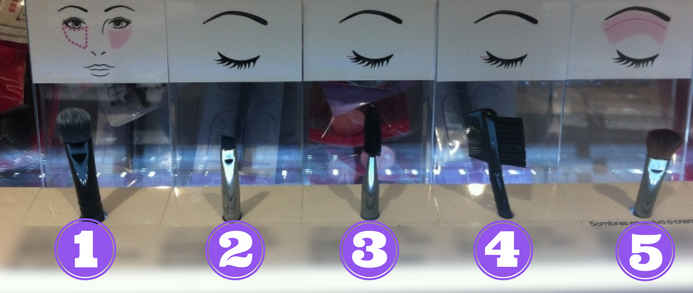 1) Для корректора.Преназначена скрыть мешки и недостатки с помощью жидкого корректора или крема.2) Для карандаша или теней.Придать форму бровям и цвет векам.3) и 4) Приводит в порядок брови, разделяет ресницы.5) Для рассыпчатых и кремовых теней.Для нанесения теней на верхнюю часть века со светящимся эффектом и растушевкой.