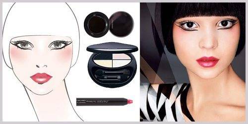 Не нужно путать японский макияж с арабским: в арабском линия от центра глаза по направлению к наружному углу постепенно приподнимается и в конце концов уходит вверх — по направлению к виску. Такой прием не поможет в создании азиатских глаз. Сначала линия идет непосредственно по линии ресниц до внешнего угла глаза, а только затем слегка приподнимается (смотрите изображение).