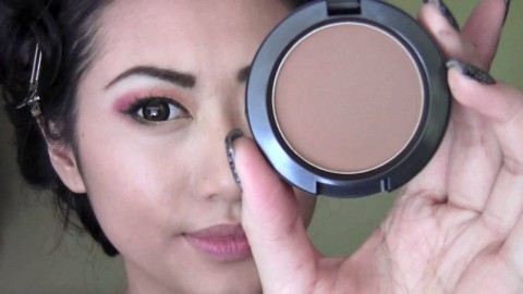 Вдохнуть в макияж живости и естественности помогут вишневые румяна. Румяна необходимо набрать на кисть, подуть на нее, чтобы убрать излишки средства, после этого в центре каждой щеки необходимо оставить круглый след.