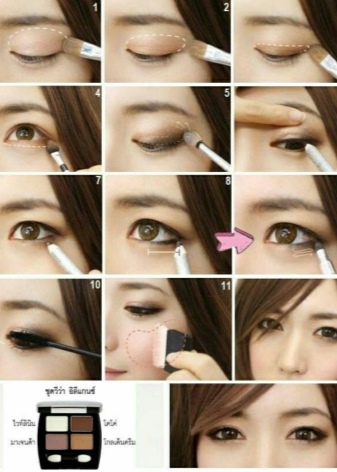 - Тени обычно не наносят – подвижное веко азиатских глаз обычно не видно;
