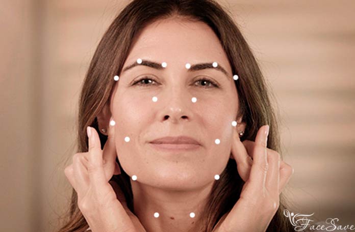 - Разогрев кожу щек, приступают к выполнению массажных движений. Первыми массируют точки, расположенные у крыльев носа, затем перемещаются к ушным раковинам, а от них по скуловым дугам спускаются к подбородку. Все движения должны быть очень деликатными, не допускающими трения.
