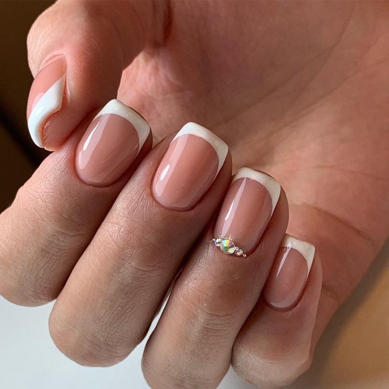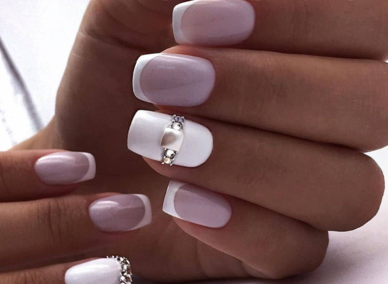 Модный френч можно дополнить изящными украшениями. Классические телесно-белые вариации очень украсят