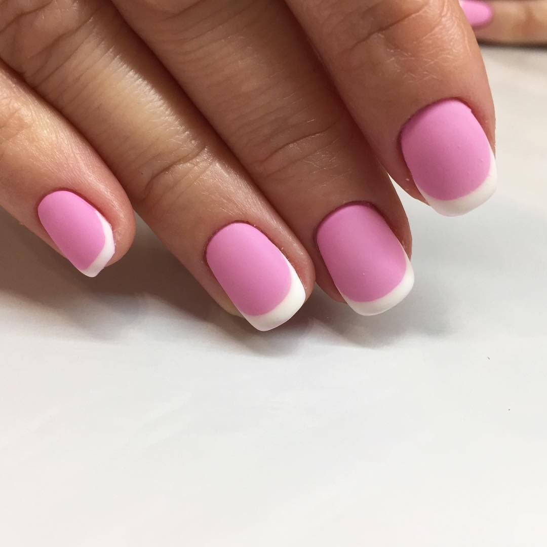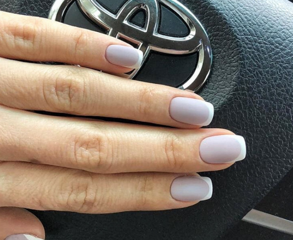 - С недавних пор популярность приобрел матовый французский маникюр. Сочетание глянцевого и матового лаков создает своеобразный эффект. Для достижения разного впечатления основную поверхность покрывают одним из лаков.