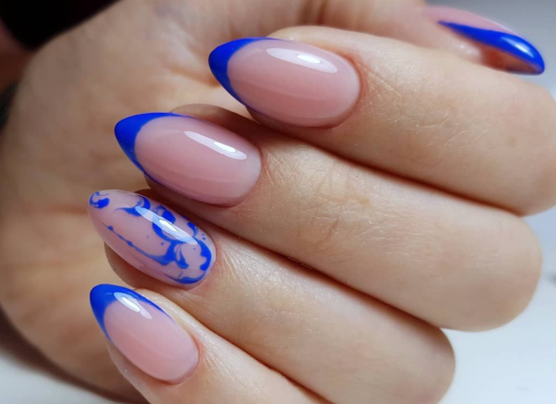 Если хочется экспериментировать, можешь попробовать сделать френч с использованием губки. Этот метод создает интересный эффект градиента цветов.