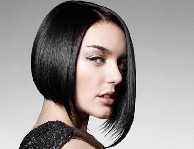 ровный срез волос ниже мочки уха;
