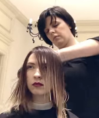- Не особенно сложная технология выполнения классического каре предполагает, что влажные вымытые волосы стригут слева и справа до линии прямого пробора. Если необходимо, нужно выполнить градуирование. В зависимости от того, нужно ли, чтобы волосы загибались вовнутрь или наружу, оставляют более длинными пряди наружного или внутреннего контура прически. Технически это выглядит так: под углом сорок пять градусов вертикальные пряди состригаются, двигаясь от затылка вверх (низкая градуировка). Если задумано классическое каре без челки, то далее идет проработка висков и окантовка краев.
