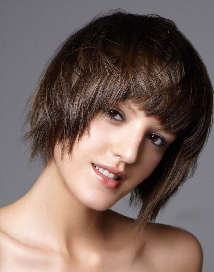 – это универсальный выбор, но выгоднее образ смотрится на круглом или квадратном лице. Прекрасная база для создания короткой челки и рваных краев – немного непослушные прядки.