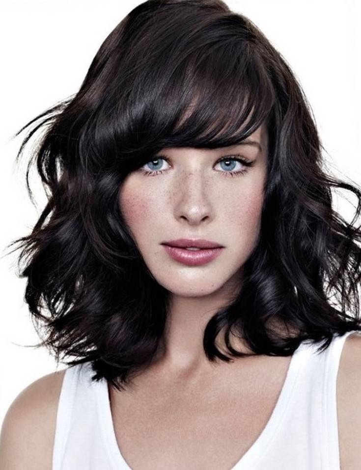 Вместо этого обратите внимание на удлиненную филированную челку длиной до бровей или на косую до подбородка Грушевидная форма лица. Откажитесь от объема в области подбородка, так как это еще больше подчеркнет полноту лица