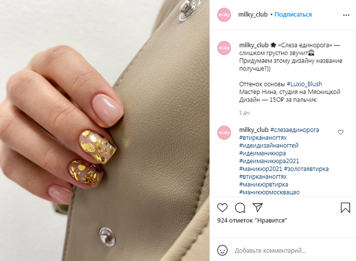 Стандартный, но обязательный для специалиста контент. Внесите изюминку, показав маникюр со всех сторон (можно снять видео), при этом расскажите об особенностях проделанной работы.