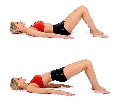 Исходное положение лежа на спине, ноги согнуть в коленях. Становимся в мостик, поднимая ягодицы, сокращаем мышцы тазового дна. Возвращаемся в исходное положение в исходное положение.