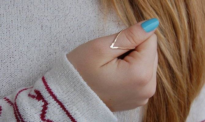 Большой палец даже на изящной кисти достаточно мощный, так что излишне тонкие украшения на нем выглядят не слишком элегантно. На нем хорошо смотрятся достаточно широкие ободки по типу обручальных колец – это самый стилистически нейтральный вариант.