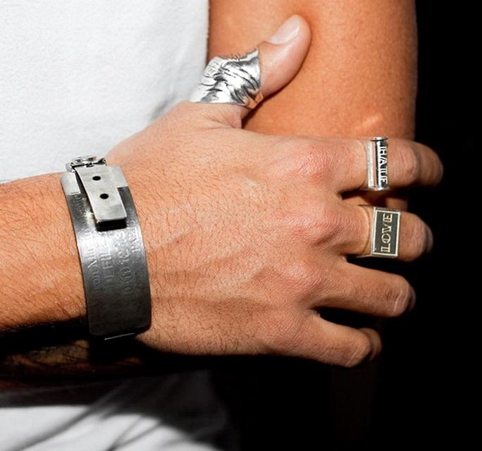 Мужчинам советуют рассматривать широкие кольца, которые будут пропорциональны их мужественным рукам. Им, как и во всем аксессуарах, стоит придерживаться монохромной цветовой гаммы и минималистичного дизайна. Нередко на мужских украшениях встречаются мотивы диких животных, оружия.
