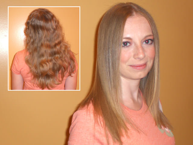 На первом фото такие волосы были до процедуры, просто помыты без последующей укладки и использования кондиционера. Как видно, они суховаты, и лишены блеска, зато объема хоть отбавляй.