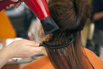 - Далее пряди сушатся феном теплым воздухом, при этом мастер укладывает их расческой-скелетом. Этот этап достаточно длительный, так как каждую прядь необходимо тщательно просушить.